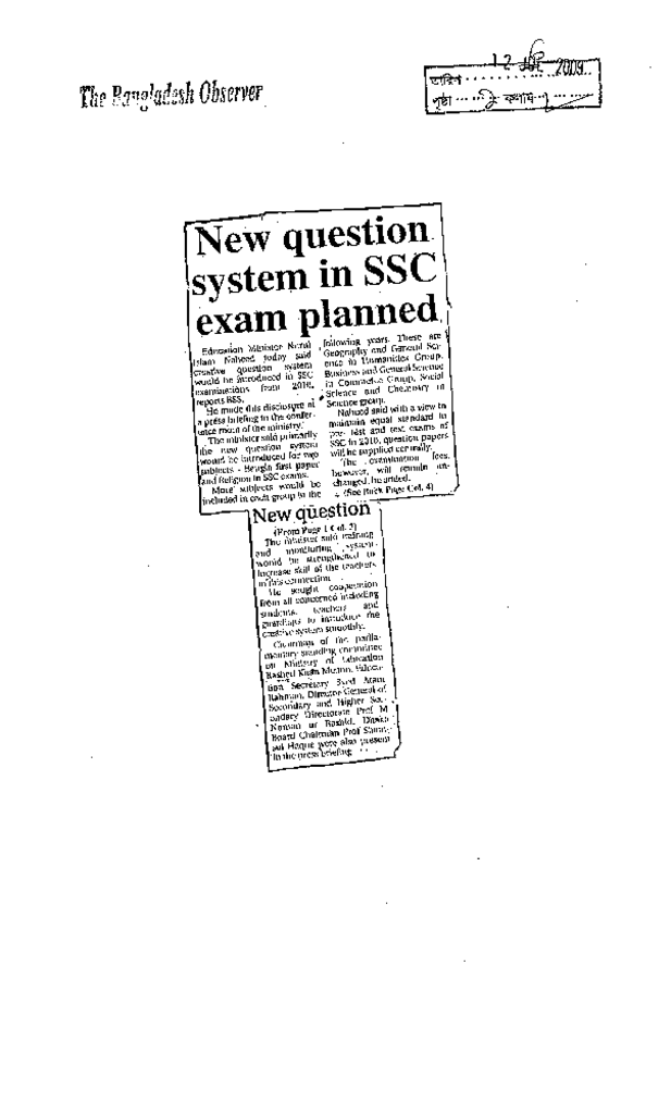 New question system in SSC exam planned Published on Newspaper The Bangladesh Observer Category Public Examination Public Examination SSC Download