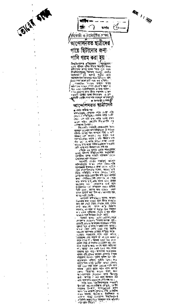 আন্দোলনরত ছাত্রীদের গায়ে ছিটানোর জন্য পানি গরম করা হয় Published on Newspaper ভোরের কাগজ Category Education Policy / Education Commission Download
