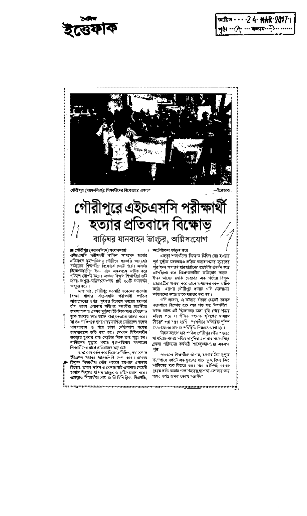 গৌরিপুরে এইচএসসি পরীক্ষার্থী হত্যার প্রতিবাদে বিক্ষোভ Published on Newspaper দৈনিক ইত্তেফাক Category Public Examination Public Examination HSC Download