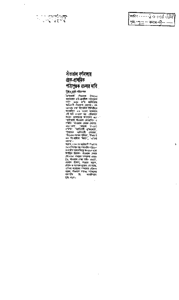 সাওতাল বর্ণমালায় প্রাক-প্রাথমিক পাঠ্যপুস্তক রচনার দাবি Published on Newspaper দৈনিক সংবাদ Category Child Education Download