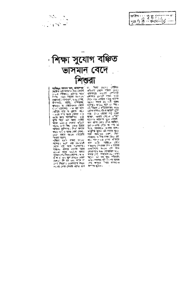 শিক্ষা সুয়োগ বঞ্চিত ভাসমান বেদে শিশুরা Published on Newspaper দৈনিক জনকণ্ঠ Category Child Education Download