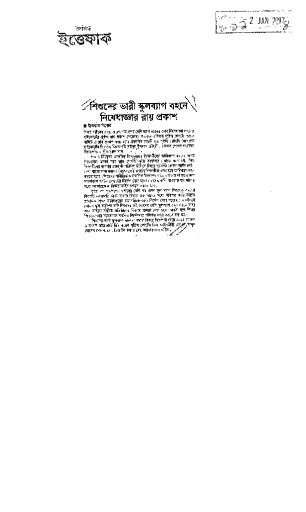 শিশুদের ভারী স্কুলব্যাগ বহনে নিষেধাজ্ঞার রায় প্রকাশ Published on Newspaper দৈনিক ইত্তেফাক Category Child Education Download