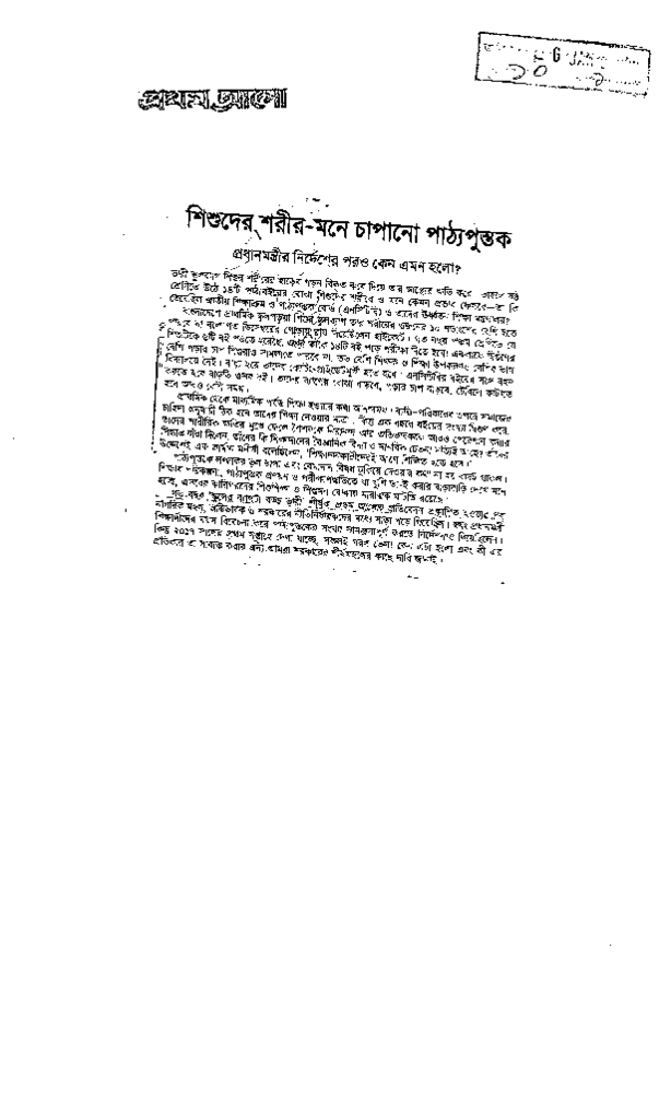 শিশুদের শরীর মনে চাপানো পাঠ্যপুস্তক Published on Newspaper দৈনিক প্রথম আলো Category Child Education Download
