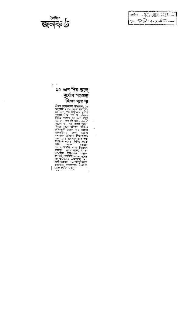 ৯৫ ভাগ শিশু স্কুলে দুর্যোগ সংক্রান্ত শিক্ষা পায় না Published on Newspaper দৈনিক জনকণ্ঠ Category Child Education Download