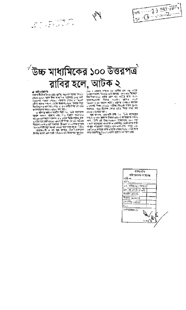 উচ্চ মাধ্যমিকের ১০০ উত্তরপত্র রাবির হলে আটক ২ Published on Newspaper দৈনিক সমকাল Category Public Examination Public Examination HSC Download