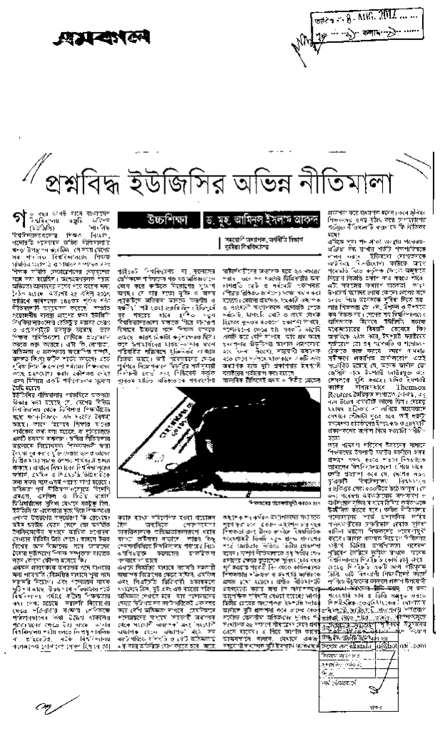 প্রশ্নবিদ্ধ ইউজিসির অভিন্ন নীতিমালা Published on Newspaper দৈনিক সমকাল Category Education Policy / Education Commission Download