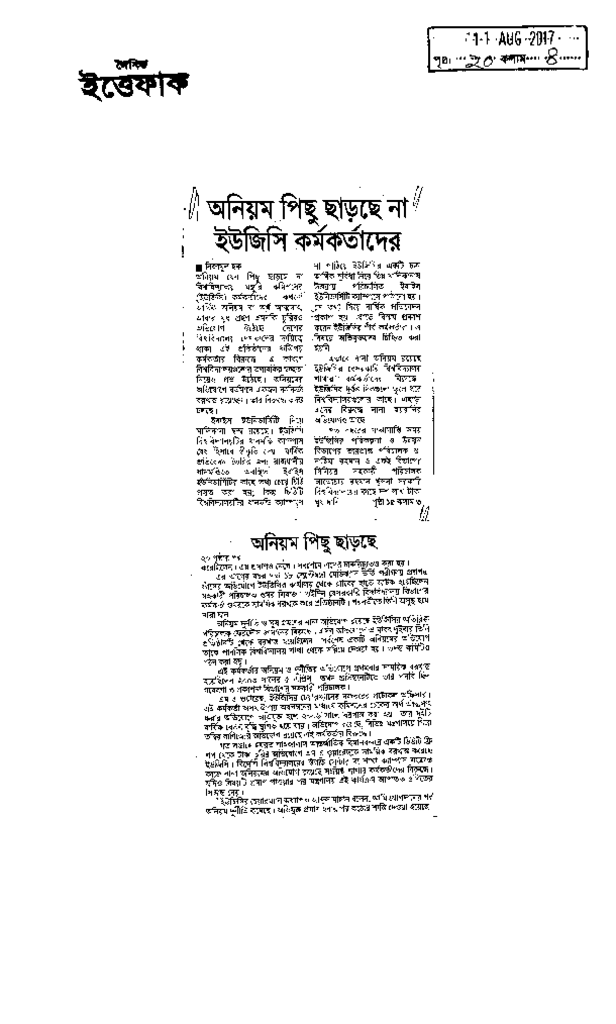অনিয়ম পিছু ছাড়ছেনা ইউজিসি কর্মকর্তাদের Published on Newspaper দৈনিক ইত্তেফাক Category Education Policy / Education Commission Download