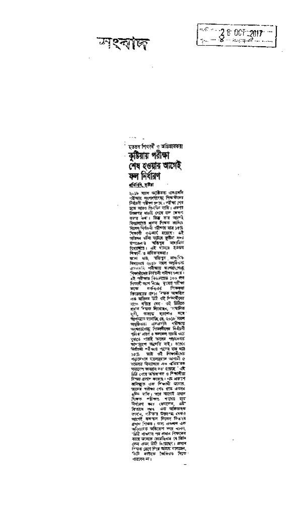 কুষ্টিয়ায় পরীক্ষা শেষ হওয়ার আগেই ফল নির্ধারণ Published on Newspaper দৈনিক সংবাদ Category Public Examination Public Examination HSC Download