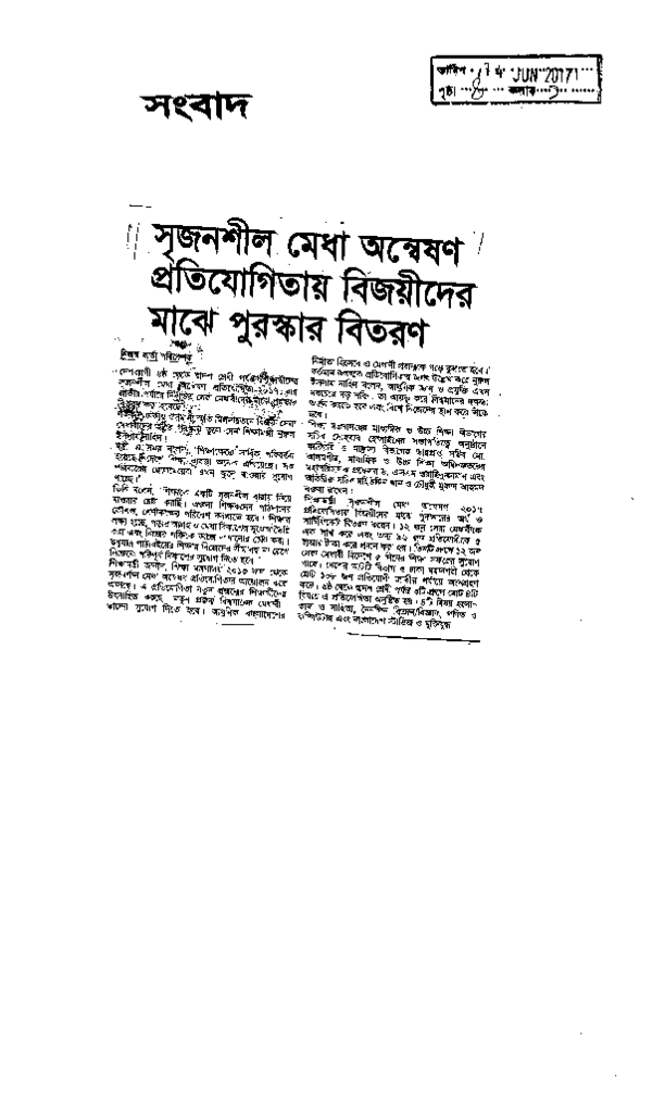 সৃজনশীল মেধা অন্বেষণ প্রতিযোগিতায় বিজয়ীদের মাঝে পুরস্কার বিতরণ Published on Newspaper দৈনিক সংবাদ Category Education Policy / Education Commission Download