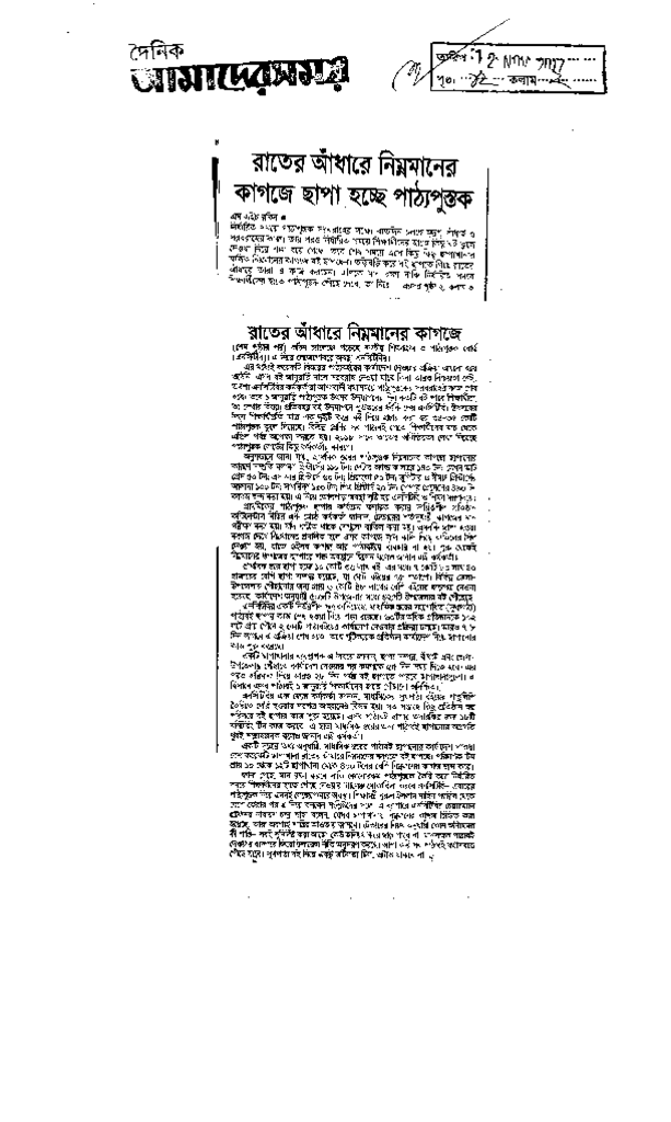রাতের আঁধারে নিম্নমানের কাগজে ছাপ হচেছ পাঠ্যপুস্তক Published on Newspaper দৈনিক আমাদের সময় Category Educational Ministry / Departments Education Board NCTB Education Ministry / Division / Directorate Download