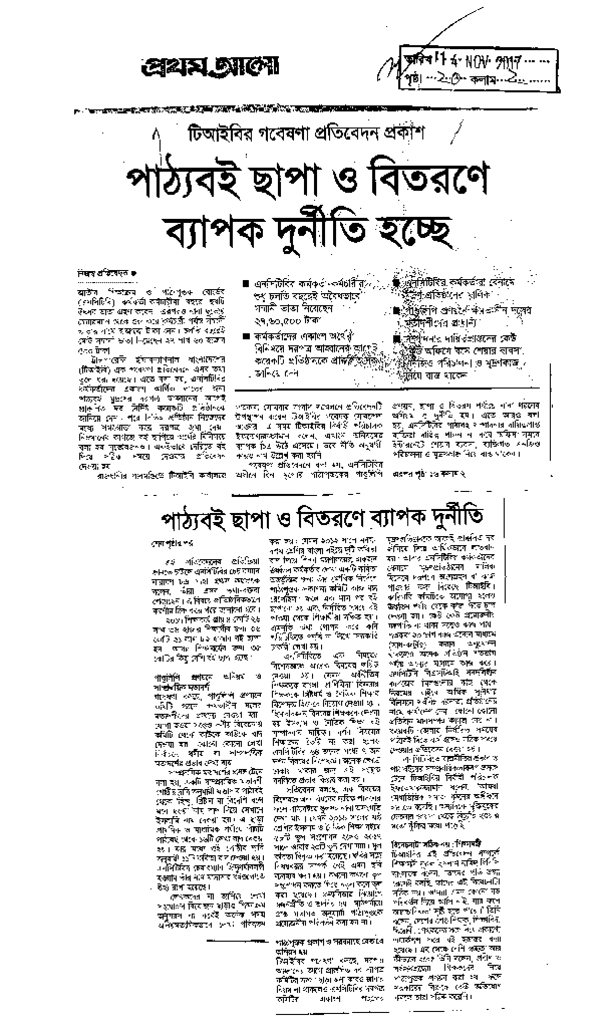 পা্ঠ্যবই ছাপা ও বিতরণে ব্যাপক র্দুর্নীতি হচ্ছে Published on Newspaper দৈনিক প্রথম আলো Category Educational Ministry / Departments Education Board NCTB Education Ministry / Division / Directorate Download