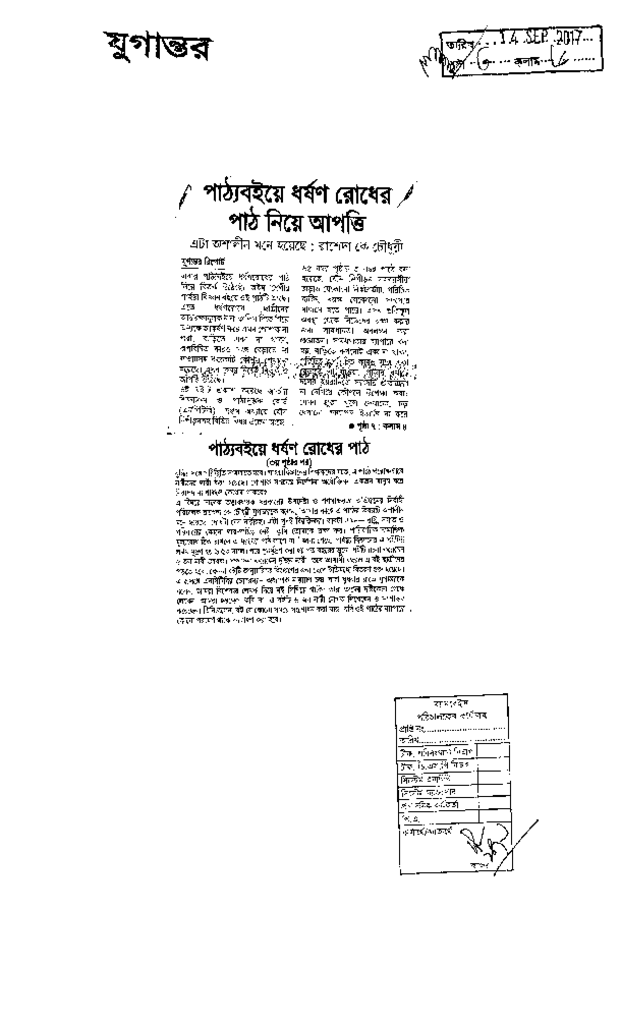 পা্ঠ্যবইয়ে ধর্ষণ রোধের পাঠ নিয়ে আপত্তি Published on Newspaper দৈনিক যুগান্তর Category Educational Ministry / Departments Education Board NCTB Education Ministry / Division / Directorate Download