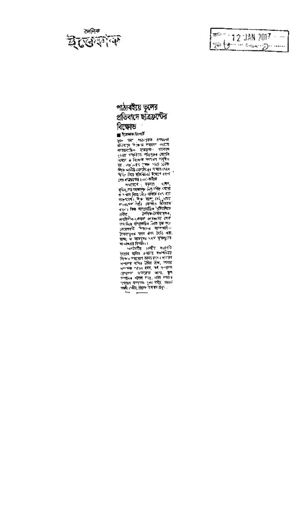 পাঠ্যবইয়ে ভুলের প্রতিবাদে ছা্ত্রফ্রন্টের বিক্ষোভ Published on Newspaper দৈনিক ইত্তেফাক Category Educational Ministry / Departments Education Board NCTB Education Ministry / Division / Directorate Download