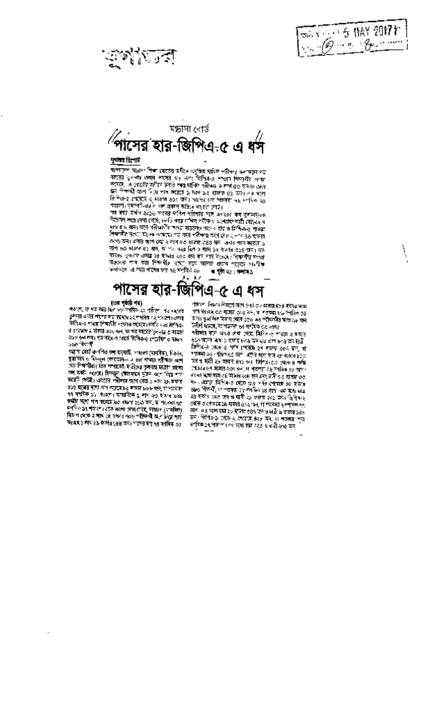 পাসের হার জিপিএ-৫ এ ধস