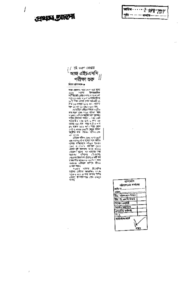 আজ এইচএসসি পরীক্সঅ শুরু Published on Newspaper দৈনিক প্রথম আলো Category Public Examination Public Examination HSC Download