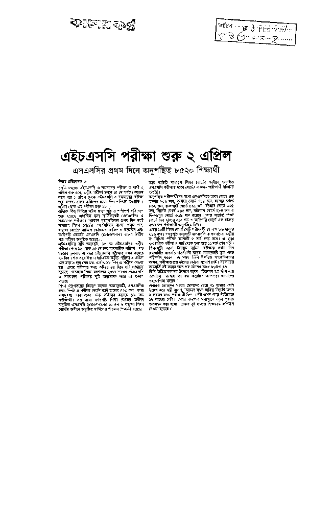 এইিএসসি পরীক্ষা শুরু ২ এপ্রিল Published on Newspaper দৈনিক কালের কন্ঠ Category Public Examination Public Examination HSC Download
