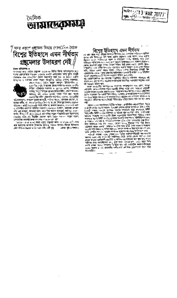 বিশ্বের ইতিহাস এমন দীর্ঘতম গ্রন্থমেলার উদাহরণ নেই Published on Newspaper দৈনিক আমাদের সময় Category Book Day Download