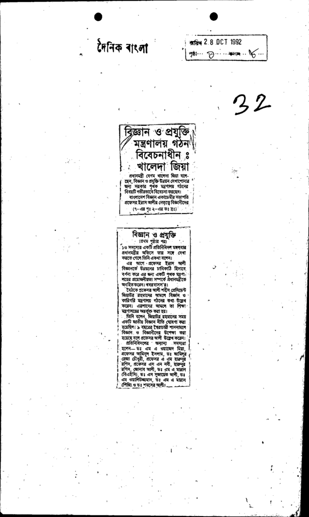 বিজ্ঞানওপ্রযুক্তিমন্ত্রণালয়গঠনবিবেচনাধীনঃখালেদাজিয়া