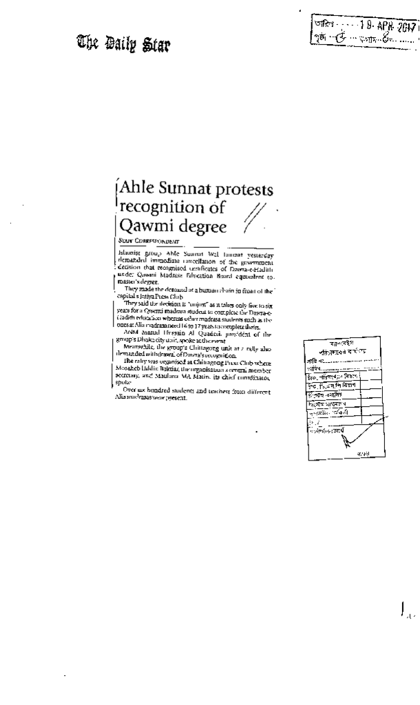 Ahle sunnat protests recognition of Quami degree Published on Newspaper The Daily Star Category Madrasah Education Madrasah Education Qawmi Download