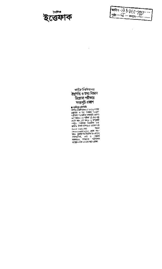 গ্রন্থাগার ও তথ্য বিজ্ঞান ডিপ্লোমা পরীক্ষার সময়সূচি প্রকাশ Published on Newspaper দৈনিক ইত্তেফাক Category Public Examination Public Examination Higher Education Download
