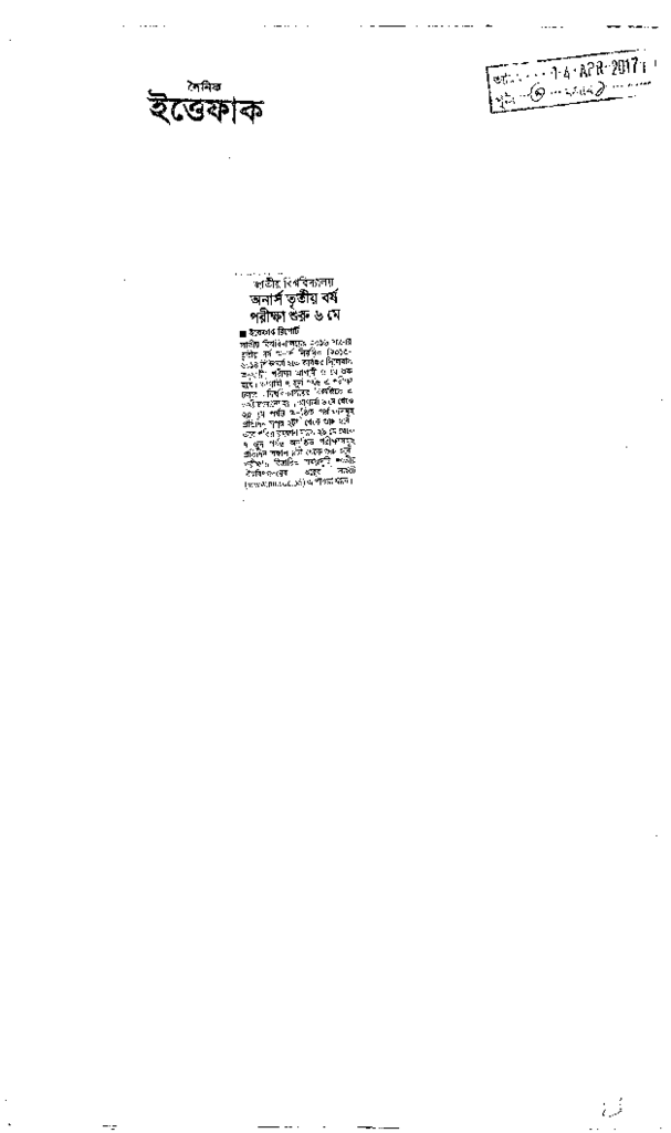 জাতীয় বিশ্ববিদ্যালয় অনার্স তৃতীয় বর্ষ পরীক্ষা শুরু ৬ মে Published on Newspaper দৈনিক ইত্তেফাক Category Public Examination Public Examination Honors(Pass) Download