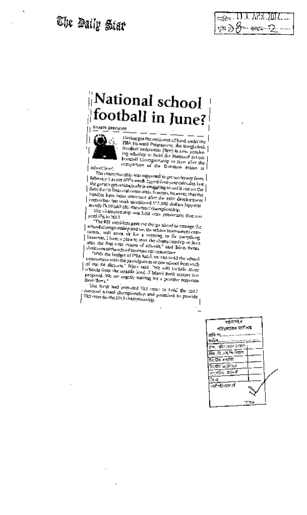 National school football in June ? Published on Newspaper The Daily Star Category Sports and Culture Download