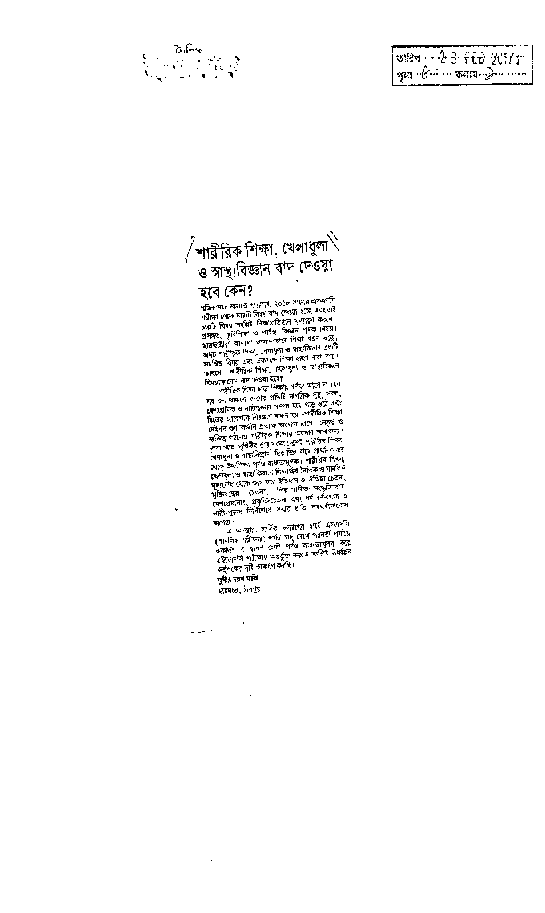 শারীরিক শিক্ষা, খেলাধুলা ও স্বাস্থ্যবিজ্ঞান বাদ দেওয়া হবে কেন ? Published on Newspaper দৈনিক ইত্তেফাক Category Sports and Culture Download