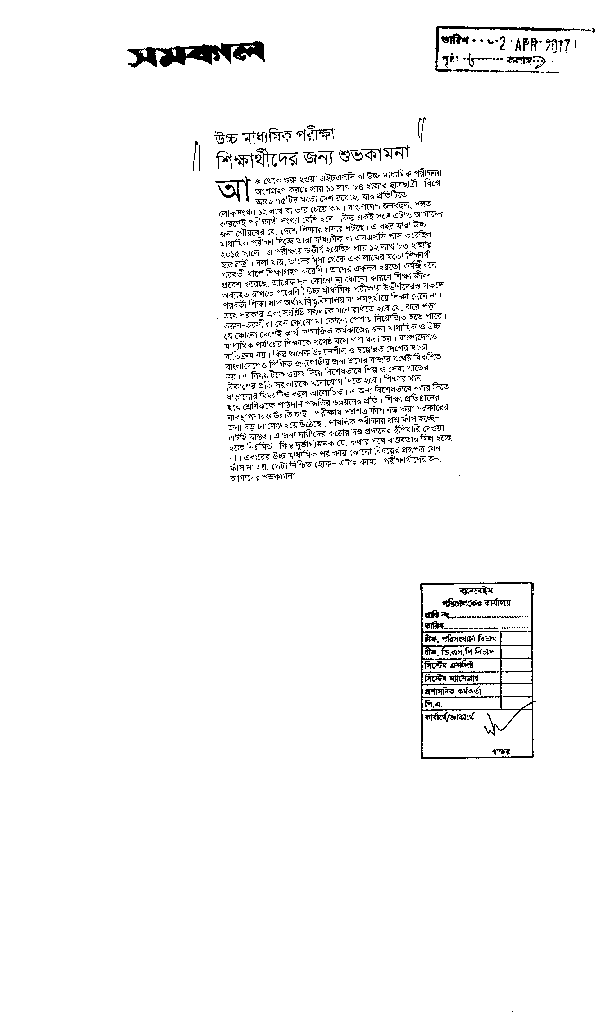 উচ্চ মাধ্যমিক পরীক্ষা শিক্ষার্থীদের জন্য শুভকামনা Published on Newspaper দৈনিক সমকাল Category Public Examination Public Examination HSC Download