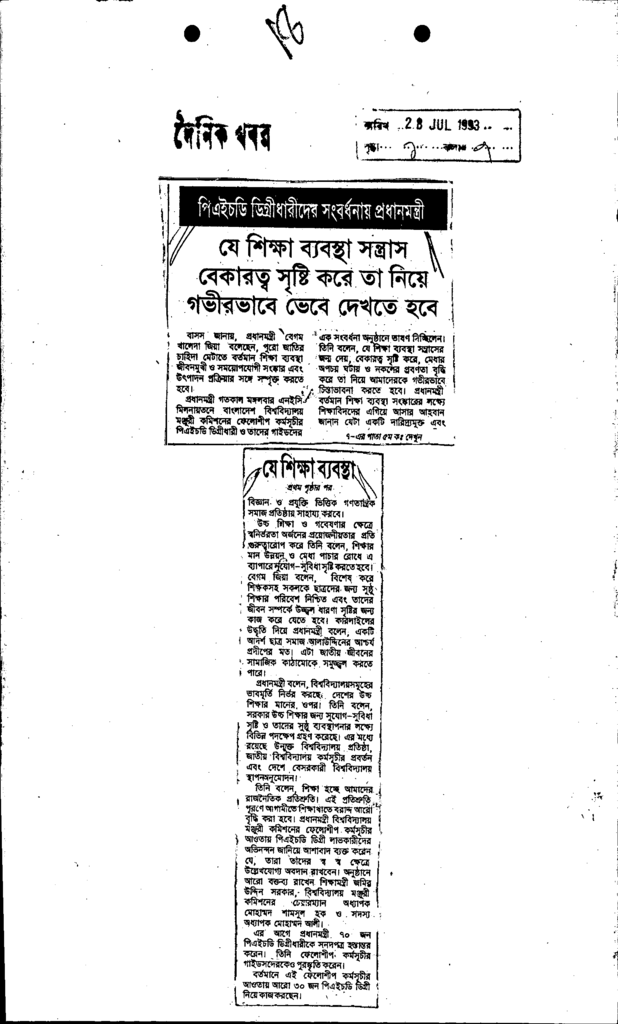 যেশিক্ষাব্যবস্থাসন্ত্রাসবেকারত্বসৃষ্টিকরেতানিয়েগভীরভাবেভেবেদেখতেহবে Published on Newspaper দৈনিক খবর Category Personal Opinion / Discussion / Commentary Download