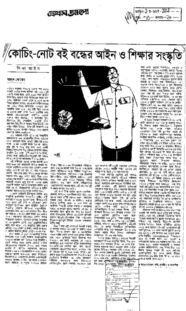 কোচিং-নোট বই বন্ধের আইন ও শিক্ষার সংস্কৃতি Published on Newspaper দৈনিক প্রথম আলো Category Education Policy / Education Commission Download