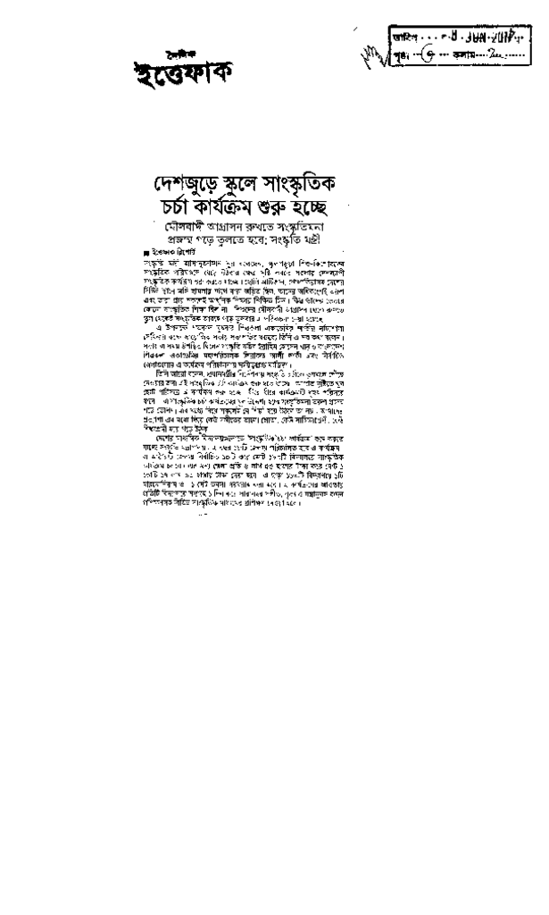 দেশজুড়ে স্কুলে সাংস্কৃতিক চর্চা কার্যক্রম শুরু হচ্ছে Published on Newspaper দৈনিক ইত্তেফাক Category Sports and Culture Download