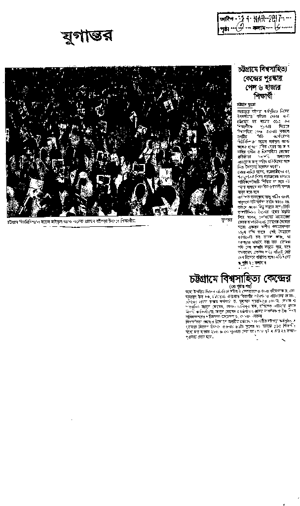 চট্রগ্রামে বিশ্বসাহিত্য কেন্দ্রের পুরস্কার পেল ৬ হাজার শিক্ষার্থী Published on Newspaper দৈনিক যুগান্তর Category Sports and Culture Download