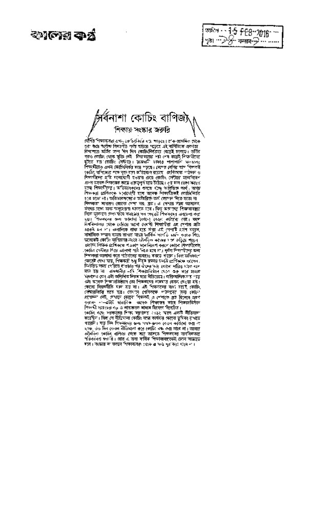 সর্বনাশা কোচিং বানিজ্য ঃ শিক্ষায় সংস্কার জরুরি Published on Newspaper দৈনিক কালের কন্ঠ Category Others Download