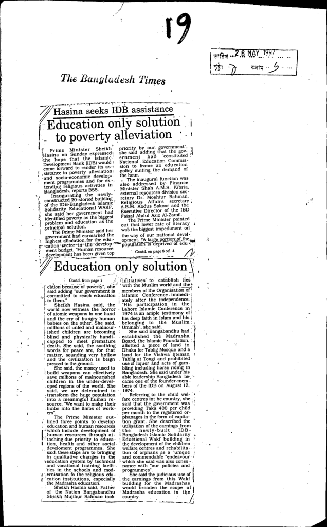 Education only solution to poverty alleviation Published on Newspaper The Bangladesh Times Category Personal Opinion / Discussion / Commentary Download