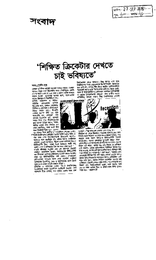 শিক্ষিত ক্রিকেটার দেখতে চাই ভবিষ্যতে Published on Newspaper দৈনিক সংবাদ Category Sports and Culture Download