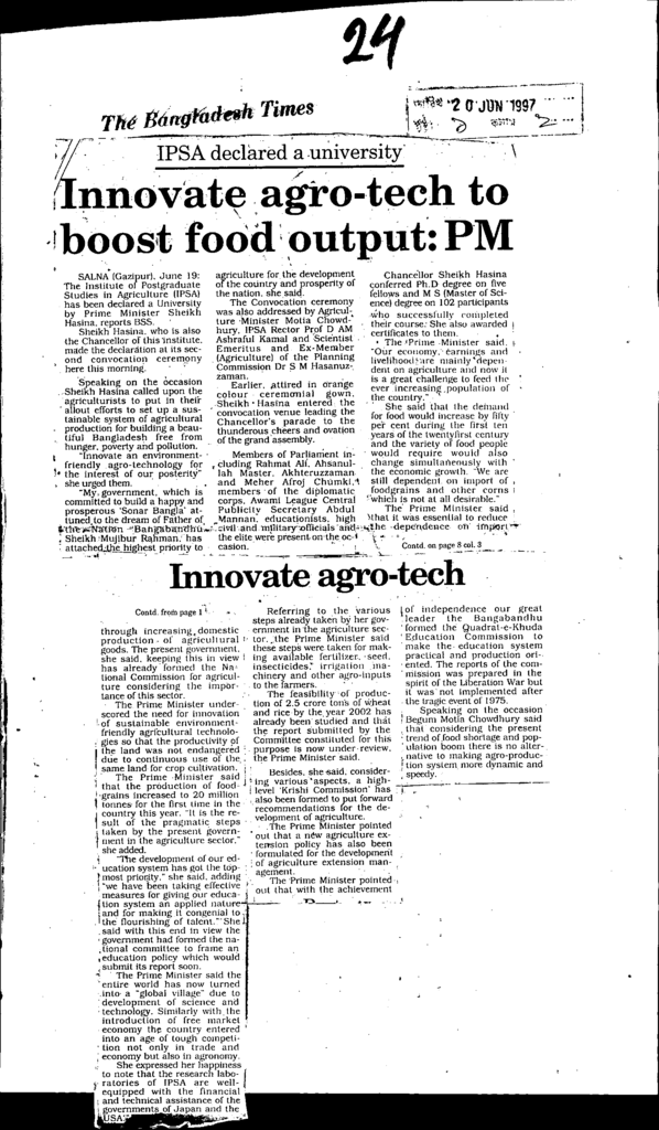 Innovate agro-tech to boost food out put : pm Published on Newspaper The Bangladesh Times Category Personal Opinion / Discussion / Commentary Download