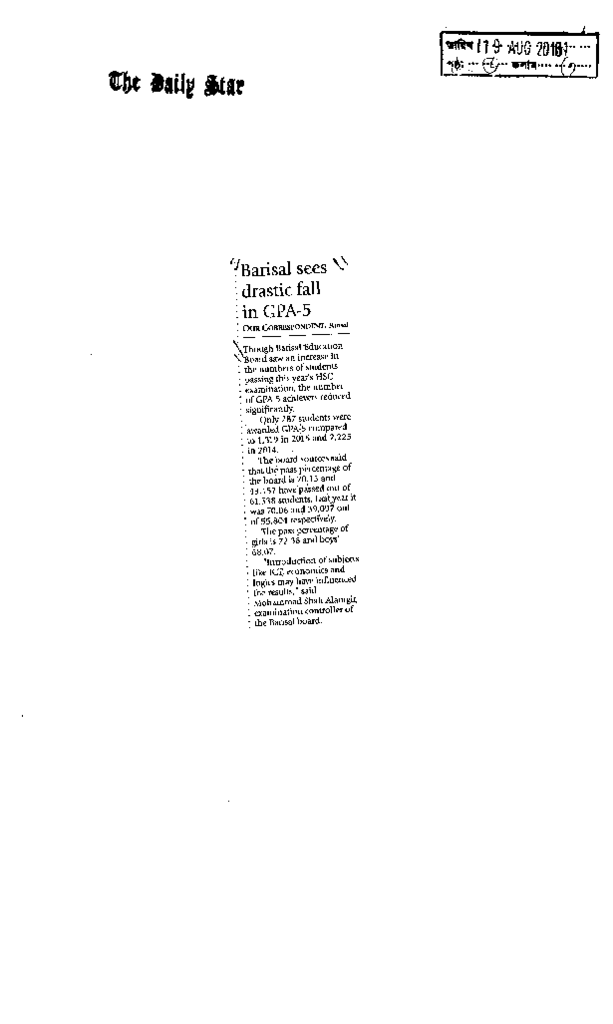 Barisal sees drastic fall in DPA-5 Published on Newspaper The Daily Star Category Public Examination Public Examination HSC Download