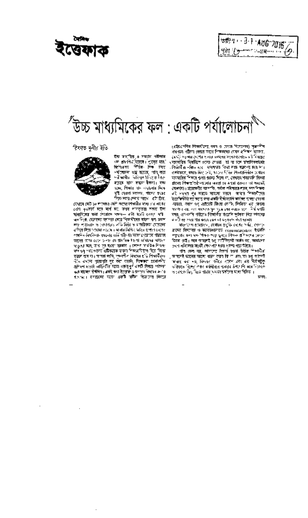 উচ্চ মাধ্যমিকে ফল : একটি পর্যালোচনা Published on Newspaper দৈনিক ইত্তেফাক Category Public Examination Public Examination HSC Download
