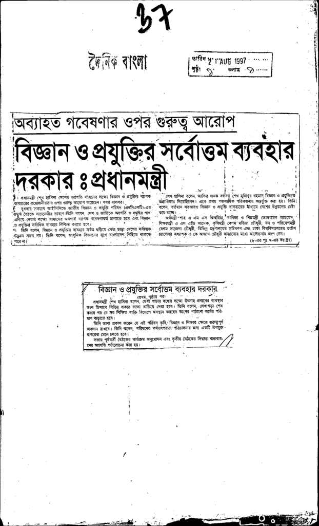 বিজ্ঞানওপ্রযুক্তিরসর্বোত্তমব্যবহারদরকারঃপ্রধানমন্ত্রী Published on Newspaper দৈনিক বাংলা Category Personal Opinion / Discussion / Commentary Download