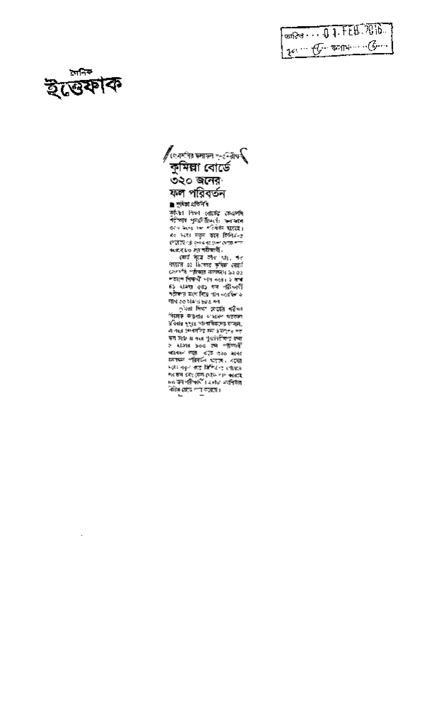 কুমিল্লা বোর্ডে ৩২০ জনের ফল পরিবর্তন Published on Newspaper দৈনিক ইত্তেফাক Category Public Examination Public Examination SSC Download