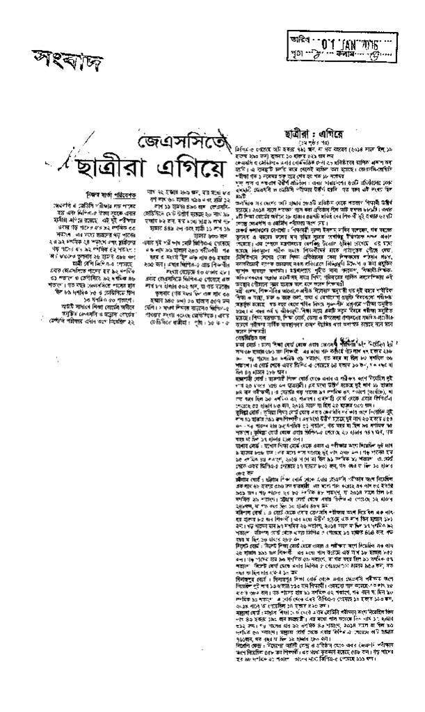 জেএসতিতে ছাত্রীলা এগিয়ে Published on Newspaper দৈনিক সংবাদ Category Public Examination Public Examination SSC Download