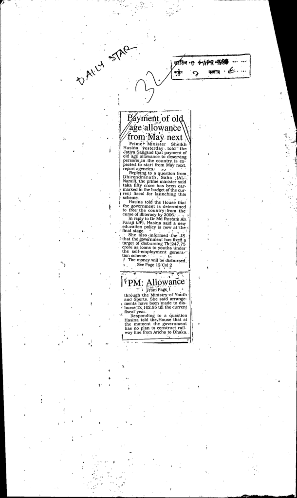 Payment of old age allowanice from may next Published on Newspaper The Daily Star Category Personal Opinion / Discussion / Commentary Download