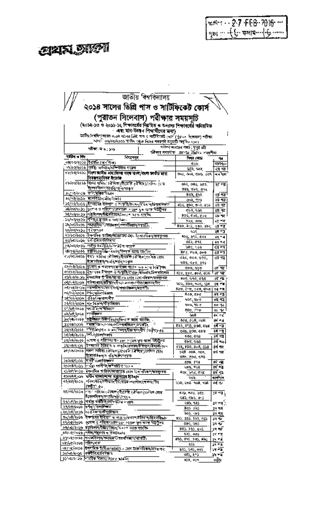 ২০১৪ সালের ডিগ্রি পাস ও সার্টিফিকেট কোর্স (পুরাতন সিলেবাস) পরীক্ষার সময়সূচি Published on Newspaper দৈনিক প্রথম আলো Category Public Examination Public Examination Others Download