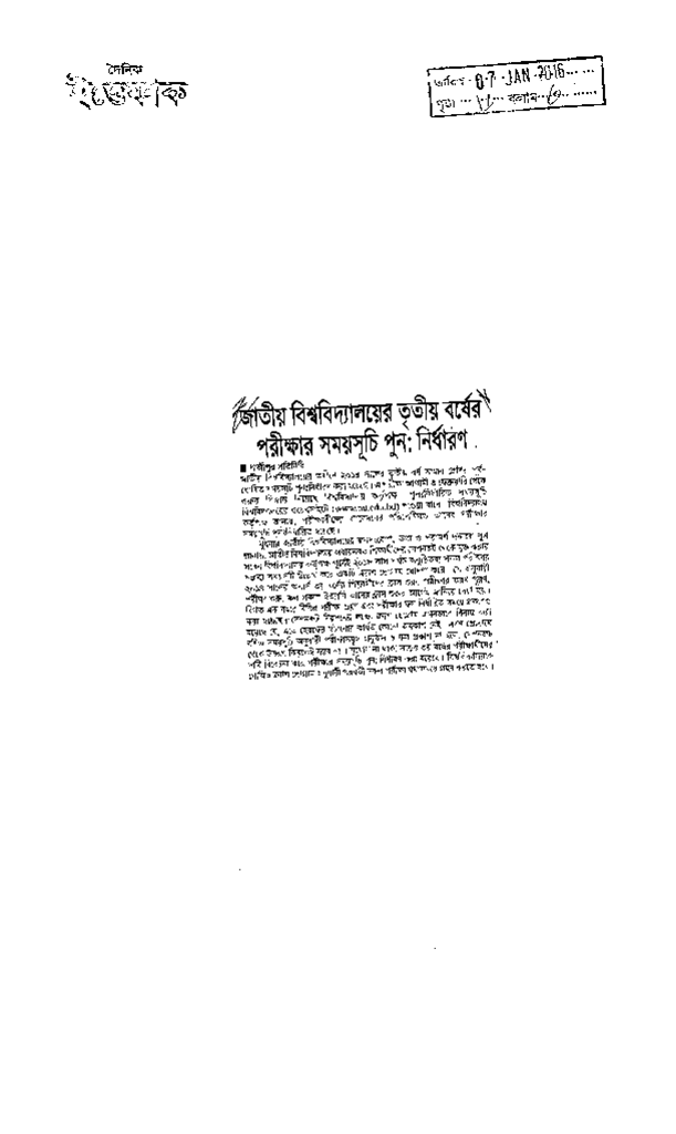 জাতীয় বিশ্ববিদ্যালয়ের তৃতীয় বর্ষের পরীক্ষার সময়সূচি পুন: নির্ধাণ