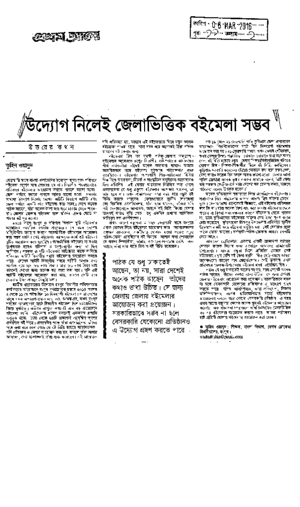 উদ্যোগ নিলেই জেলাভিত্তিক বইমেলা সম্ভব Published on Newspaper দৈনিক প্রথম আলো Category Book Fair Download