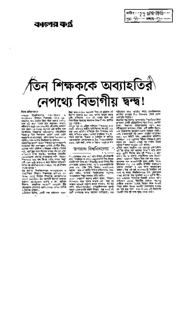 নিত শিক্ষককে অব্যাহতির নেপথ্যে বিভাগীয় দ্বন্দ্ব ! Published on Newspaper দৈনিক কালের কন্ঠ Category General Education General Education Higher Education Public Download