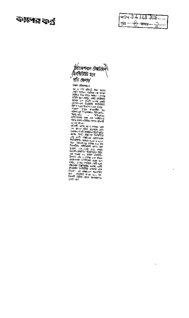 ভোকেশনাল টেক্সটাইল ইনস্টিটিউট হবে প্রতি জেলায় Published on Newspaper দৈনিক কালের কন্ঠ Category Technical and Vocational Education Download