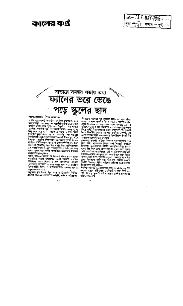 ফ্যানের ভরে ভেঙে পড়ে স্কুলের ছাদ Published on Newspaper দৈনিক কালের কন্ঠ Category General Education General Education Download