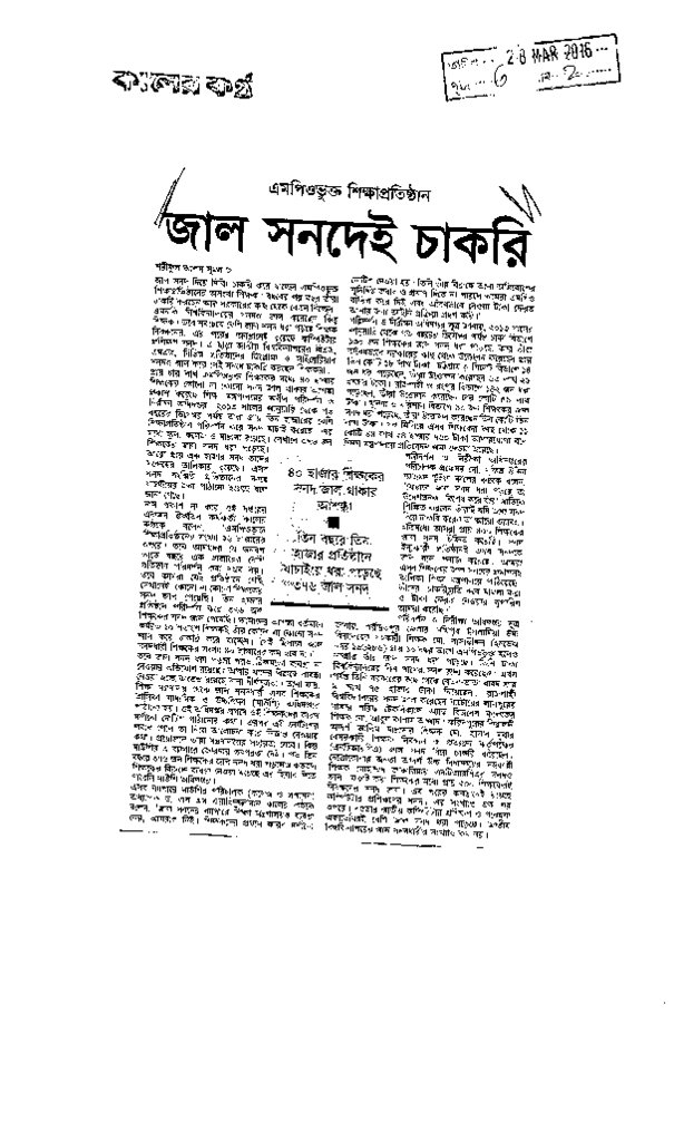 জাল সনদেই চাকরি Published on Newspaper দৈনিক কালের কন্ঠ Category General Education General Education Download