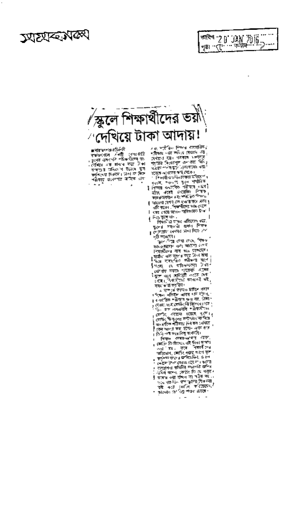 স্কুলে শিক্ষার্থীদের ভয় দেখিয়ে টাকা আদায় ! Published on Newspaper দৈনিক সমকাল Category General Education General Education Download